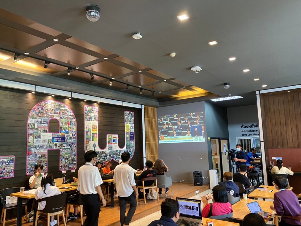 ขณะที่บรรยากาศที่มหาวิทยาลัยเชียงใหม่ นักศึกษาคณะนิติศาสตร์ ได้นำป้าย ที่ระบุว่า “ส.ส. และ ส.ว. ต้องเคารพเสียงประชาชน” มาติดไว้หน้าคณะ โดยนักศึกษาส่วนหนึ่งได้รวมตัวกันภายในลอว์ คอฟฟี่คลับ เพื่อติดตามการถ่ายทอดสดการประชุม จากอาคารรัฐสภา ผ่านจอโปรเจกเตอร์อย่างใกล้ชิด