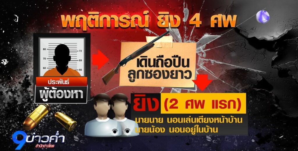 ชุมพร 18 ก.ค. – คุมตัวมือปืนโหดยิง 4 ศพ และสุนัข 1 ตัว ทำแผนประกอบคำรับสารภาพ ผู้ต้องหาเปิดปากสารภาพฆ่าเพราะผูกใจเจ็บที่ผู้ตายชอบลักลอบเข้ามาฟันต้นยางพารากว่า 200 ต้น ในสวนยาง ก่อนขโมยขี้ยางไปขายหลายครั้ง