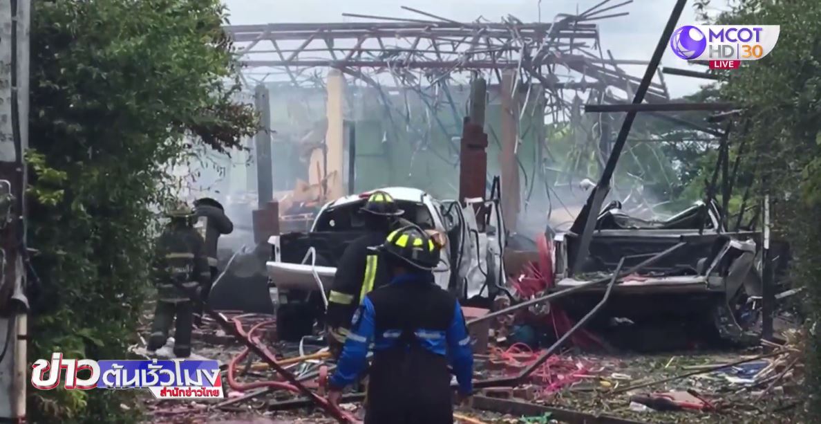 เจ้าของโรงงาน บอกว่า ขณะเกิดเหตุคนงานกำลังเร่งผลิตพลุและดอกไม้ไฟไว้ขายในช่วงลอยกระทง แต่เกิดประกายไฟ คาดว่าไฟฟ้าลัดวงจร จนทำให้เชื้อเพลิงจากการทำพลุระเบิดรุนแรง และยังมีส่วนผสมในการทำพลุดอกไม้ไฟอีกจำนวนมากอยู่ใต้อาคาร เจ้าหน้าที่ต้องกันพื้นที่เกิดเหตุไว้ก่อน เพื่อความปลอดภัย. – สำนักข่าวไทย