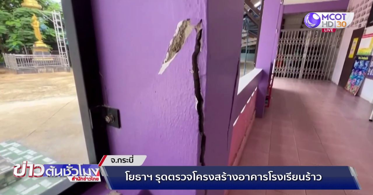 กระบี่ 26 ก.ค. – เจ้าหน้าที่โยธาฯ เข้าตรวจสอบโครงสร้างอาคารเรียนของโรงเรียนดังเมืองกระบี่ หลังพบรอยร้าวหลายจุด เบื้องต้นทางโรงเรียนแจ้งหยุดการเรียนการสอนชั่วคราว 2 วัน