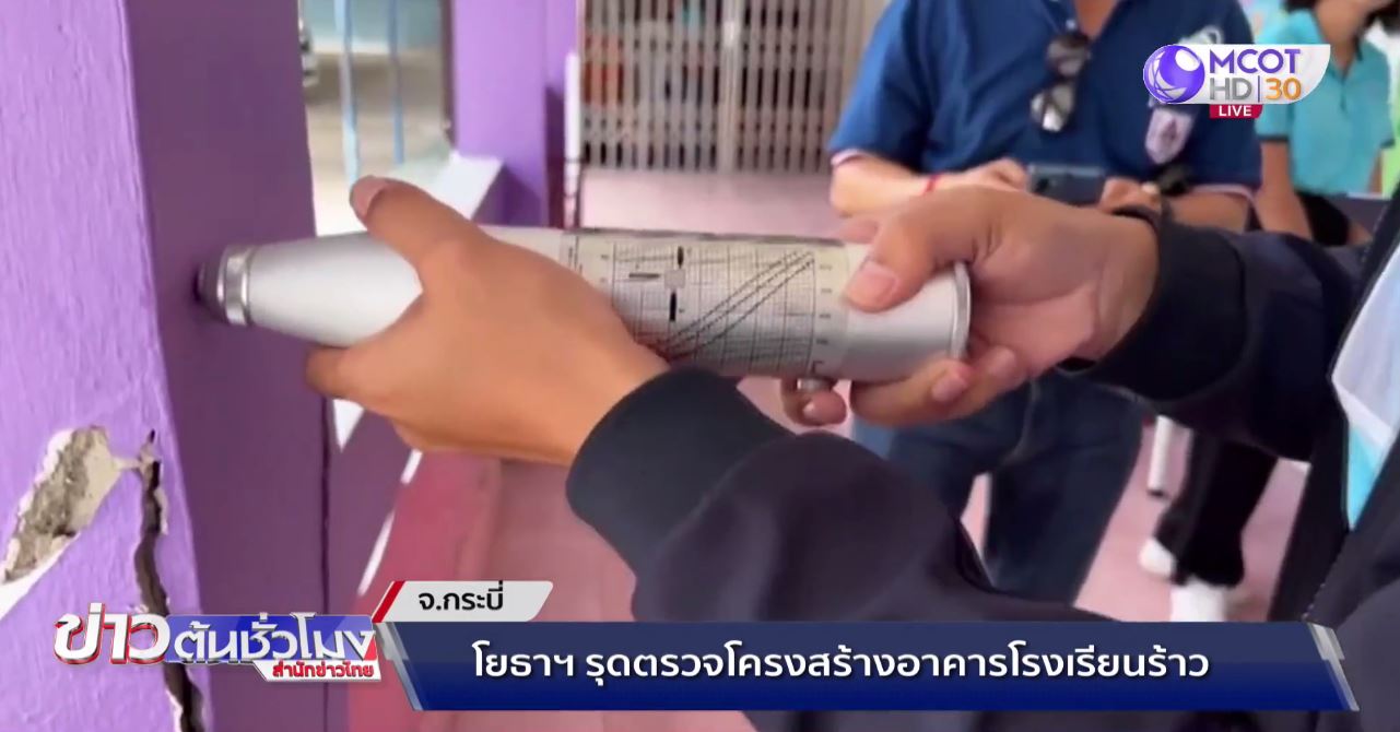 เจ้าหน้าที่สำนักงานโยธาธิการและผังเมือง ร่วมกับกองช่าง เทศบาลเมืองกระบี่ เข้าตรวจสอบโครงสร้างอาคารเรียนของโรงเรียนชื่อดังในเขตเทศบาลเมืองกระบี่ ใกล้กับอาคารศาลากลางหลังเก่า ซึ่งเป็นอาคารเรียนระดับชั้นอนุบาล หลังรับแจ้งเกิดรอยแตกร้าวหลายจุด สร้างความวิตกกังวลแก่ผู้ปกครองและนักเรียน โดยเฉพาะเสาคอนกรีตของอาคาร พบรอยร้าว 8 จุด