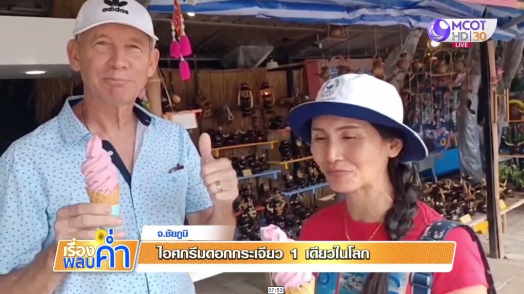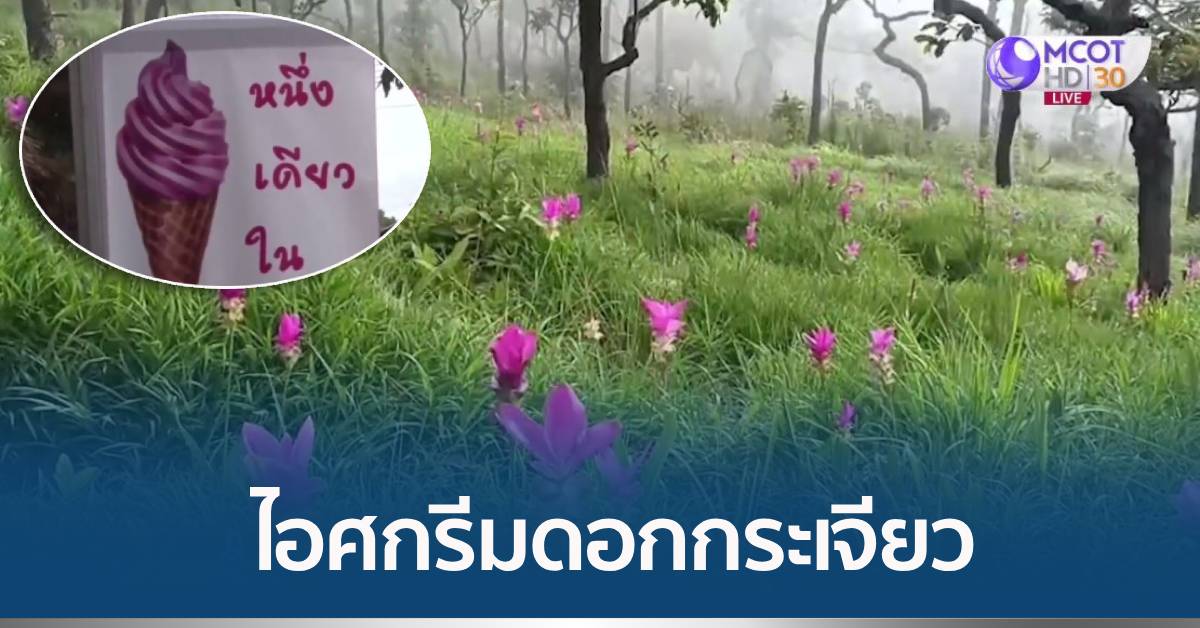 ชัยภูมิ 26 ก.ค. – หนึ่งเดียวในโลก ไอศกรีมดอกกระเจียว จ.ชัยภูมิ สาวไอเดียบรรเจิด ทำขึ้นมาจำหน่ายรับนักท่องเที่ยวที่มาอุทยานแห่งชาติป่าหินงาม ชมความสวยงามของทุ่งดอกระเจียว