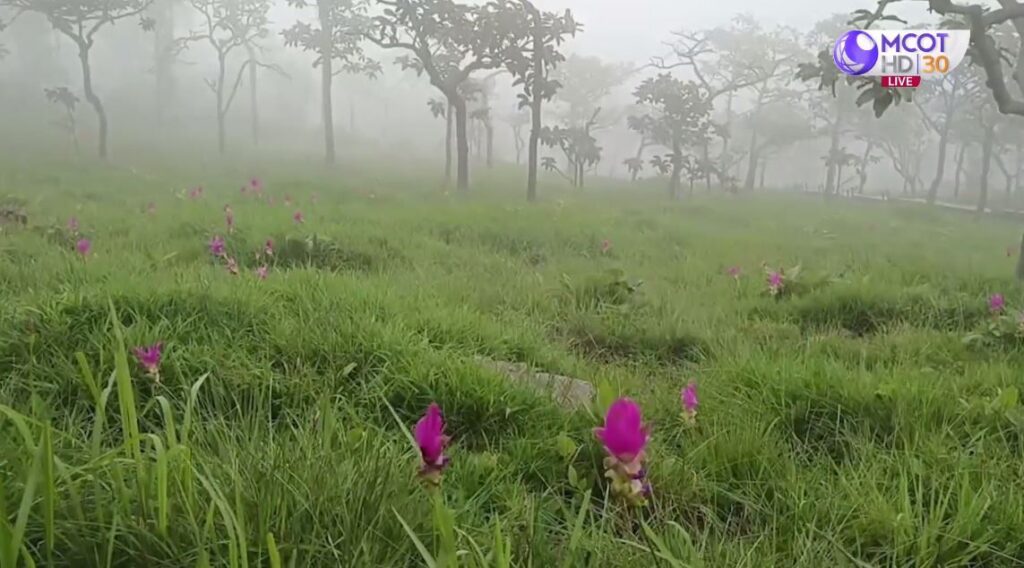 สำหรับใครที่จะมาชมทุ่งกระเจียว ตอนนี้กำลังบานเต็มที่ ปีนี้บานหนาแน่นกว่าทุกปี และจะเริ่มโรยช่วงกลางเดือนสิงหาคม นอกจากนี้ยังมีป่าหินงามที่มีกลุ่มหินรูปร่างสวยงาม หน้าผาสุดแผ่นดิน ให้ชมกันอีกด้วย. – สำนักข่าวไทย