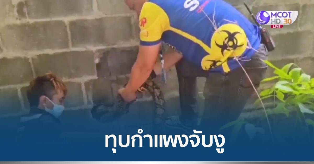 นนทบุรี 27 ก.ค. – งูเหลือมยักษ์หัวดื้อ เล่นชักเย่อกับกู้ภัยนานกว่า 2 ชั่วโมง ไม่ยอมให้จับง่ายๆ ถึงขั้นต้องทุบกำแพงบ้าน เล่นเอาเหนื่อยไปตามๆ กัน