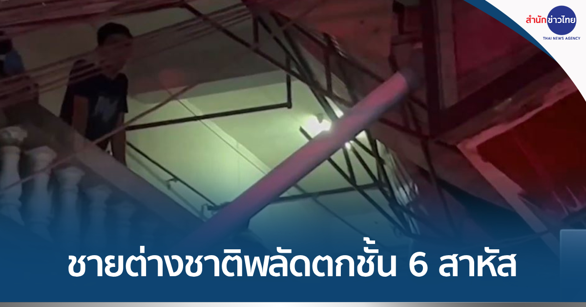 สงขลา 30 ก.ค. – นักท่องเที่ยวชาวอินเดียพลัดตกจากชั้น 6 ของโรงแรมแห่งหนึ่ง เขตเทศบาล ต.สำนักขาม อ.สะเดา จ.สงขลา ตกลงมาค้าบริเวณกันสาดร้านอาหาร บาดเจ็บสาหัส