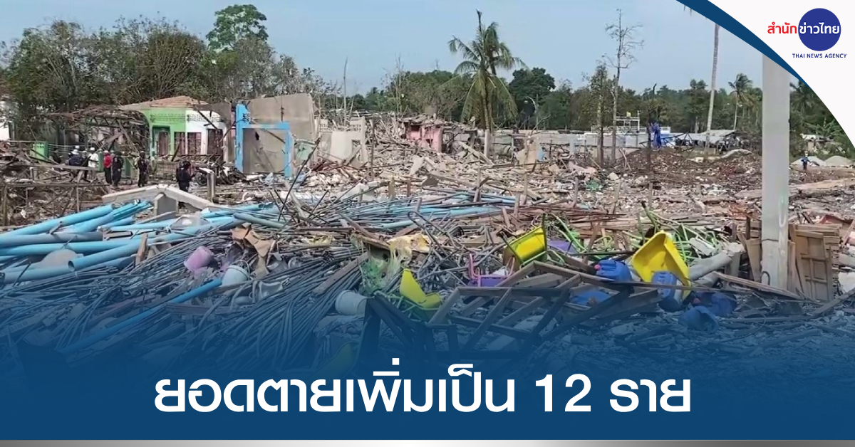 นราธิวาส 30 ก.ค. – เหตุโกดังเก็บประทัดและดอกไม้ไฟระเบิด ที่ตลาดมูโนะ จ.นราธิวาส ยอดผู้เสียชีวิตเพิ่มเป็น 12 ราย มีผู้ประสบภัยมาลงทะเบียนขอรับความช่วยเหลือแล้ว 365 ราย