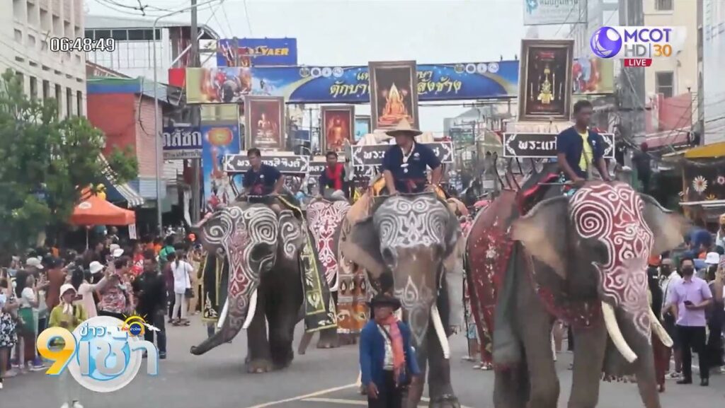 ชมภาพขบวนช้าง 53 เชือกร่วมแห่เทียนพรรษา