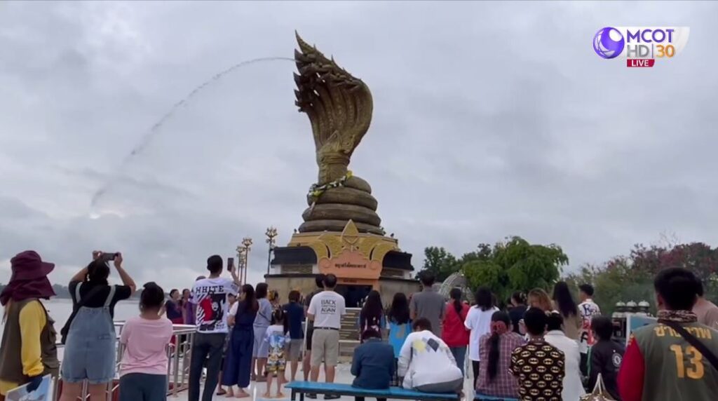 นอกจากนี้ อีกสถานที่สำคัญ มีประชาชน นักท่องเที่ยว เดินทางมาทำบุญกราบไหว้ขอพร คึกคักไม่แพ้กัน คือ แลนด์มาร์กพญานาคศักดิ์สิทธิ์ องค์พญาศรีสัตตนาคราช ในเขตเทศบาลเมืองนครพนม ถือเป็นองค์พญานาคนาคาธิบดีสองฝั่งโขง เป็นที่เคารพศรัทธาของประชาชน ทั้งชาวไทยชาวลาว ก่อสร้างตามความเชื่อศรัทธา ตั้งแต่ปี 2559 ทำให้มีประชาชน นักท่องเที่ยว แห่มาขอโชคลาภไม่ขาดสาย ยิ่งช่วงวันหยุดยาวยิ่งคึกคัก . – สำนักข่าวไทย