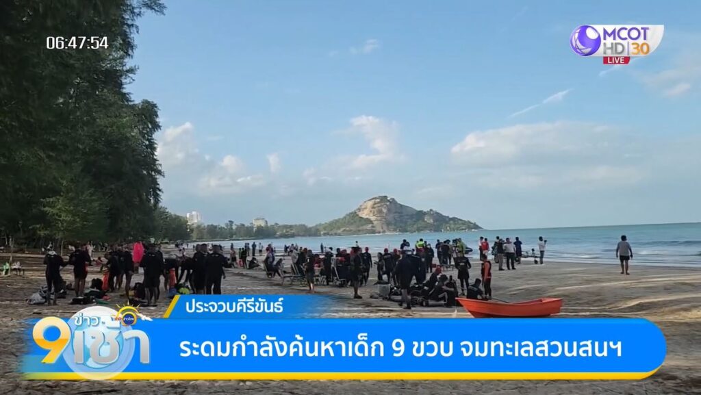 ประจวบคีรีขันธ์ 2 ส.ค. – ระดมทีมกู้ภัย เร่งค้นหา เด็กชาย 9 ขวบ หลุดจากห่วงยางจมหายในทะเล ขณะเล่นน้ำที่หาดสวนสนประดิพัทธ์ จ.ประจวบฯ