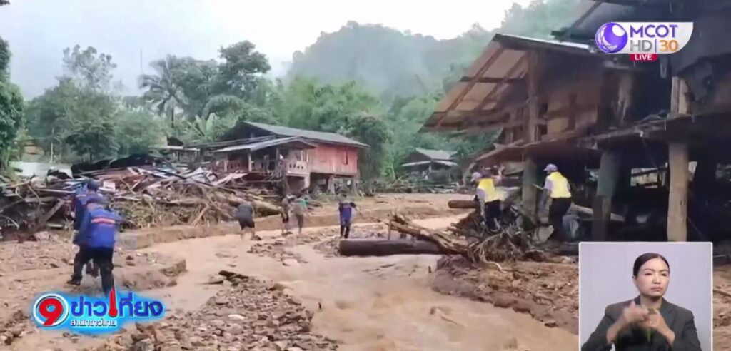 4 ส.ค. – ฝนตกหนักหลายพื้นที่ บ้านแม่ตอละ จ.แม่ฮ่องสอน น้ำหลากท่วม เส้นทางหลายหมู่บ้านยังวิกฤติ ไม่สามารถสัญจรได้ เจ้าหน้าที่เร่งช่วย ส่วนที่ จ.ตาก ฝนตกหนักสะสม 3 วัน ระดับน้ำเมยสูงขึ้นอย่างรวดเร็ว เตือนภัยสีแดงขั้นอันตราย มวลน้ำมหาศาลแดงขุ่น ทะลักล้นตลิ่ง ขนของหนีโกลาหล