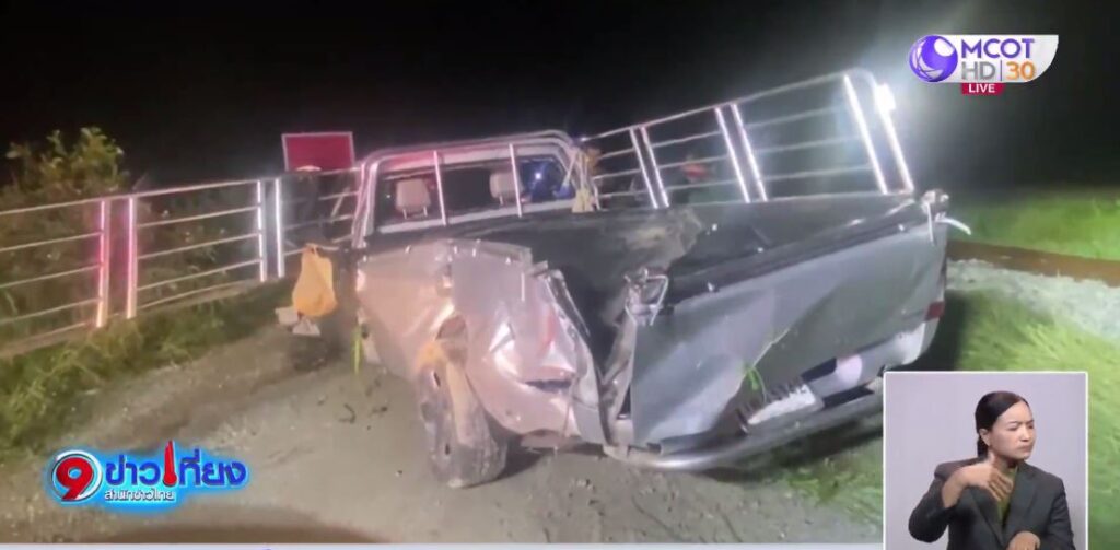 นายวิชัย อยู่เล็ก อายุ 55 ปี เป็นคนขับ ยืนรอให้ปากคำ เล่าว่า เดินทางมาจากวัดบัวโรย เขตลาดกระบัง บรรทุกคนงานจะมาจับปลาที่บ่อปลาย่านคลองอุดมชลจร เมื่อถึงจุดเกิดเหตุ เห็นรถไฟกำลังวิ่งมา แต่คนในรถบอกให้ข้ามเลย ยังทัน แต่เมื่อตัดสินใจขับรถข้ามทางรถไฟ กลับไม่ทัน จึงถูกรถไฟพุ่งชนด้านท้ายรถกระบะ จนรถหมุนตกลงมาข้างทาง ส่วนคนงานที่นั่งโดยสารมาด้านหลังกระเด็นคนละทิศคนละทาง