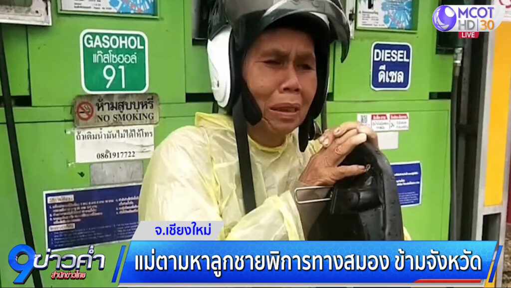 เชียงใหม่ 5 ส.ค.-5 วันหากันจนเจอ แม่วัย 61 ปี ชาวลำพูน ขี่รถจักรยานยนต์ลุยฝนตามหาลูกชายวัย 39 ปี ป่วยพิการทางสมอง หายออกจากบ้านจังหวัดลำพูน ออกค้นหากว่า 100 กม.ข้ามจังหวัดจนถึงเชียงใหม่