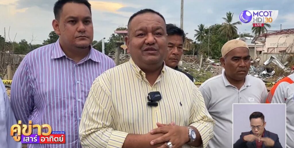 นราธิวาส 6 ส.ค. – สส.นราธิวาส เขต 3 พรรค พปชร. ยืนยันไม่มีส่วนเกี่ยวข้องเหตุโกดังพลุระเบิด ไม่รู้จักเจ้าของ ชี้ข่าวในโซเชียลเป็นขบวนการทำให้เสื่อมเสียชื่อเสียง