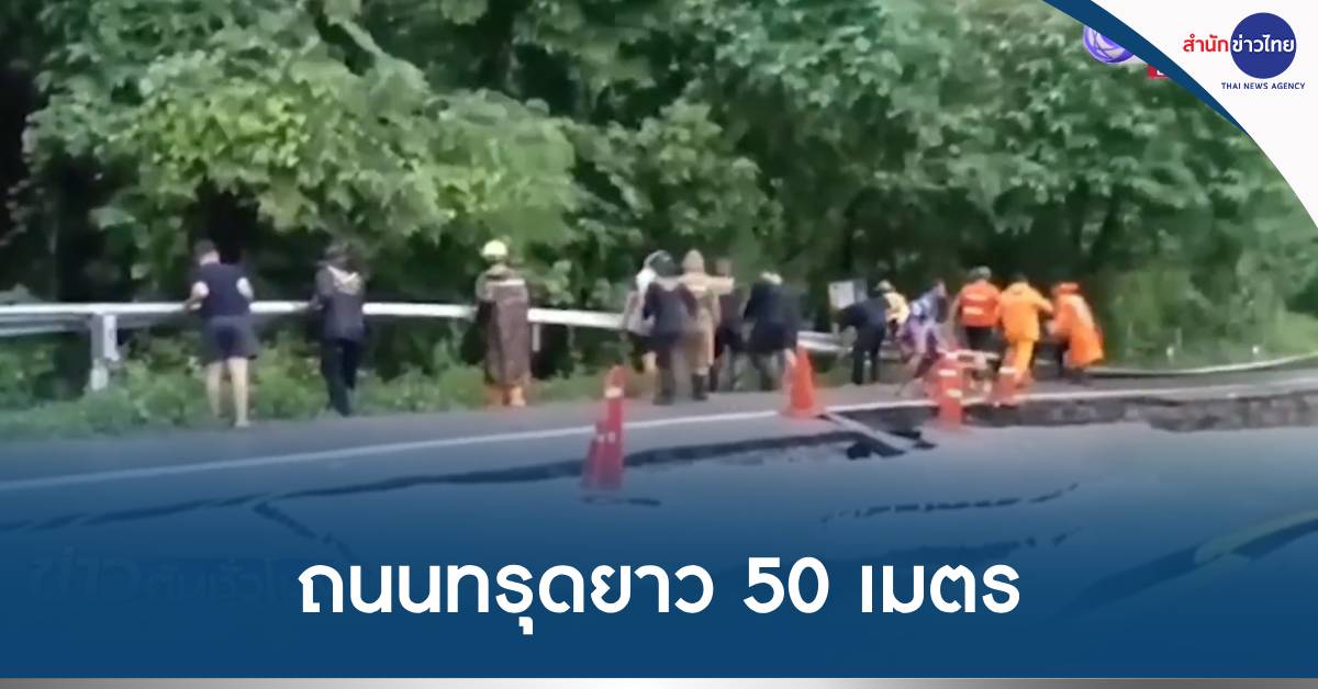 ตาก 7 ส.ค.-แนวชายแดน จ.ตาก ฝนตกหนักต่อเนื่อง ถนนสายแม่สอด-แม่สะเรียง ทรุดตัวยาวกว่า 50 เมตร ไหล่ทางภูเขามีดินสไลด์ รถทุกชนิดผ่านไม่ได้ ส่วนแม่น้ำเมยเอ่อท่วมหมู่บ้านวังผา อ.แม่ระมาด