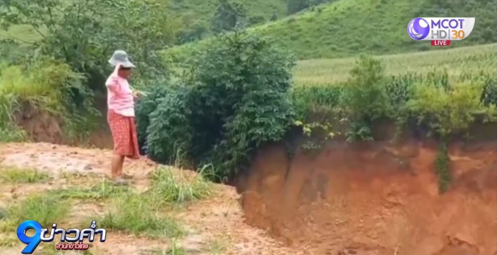 ฝนตกหนักน้ำป่ากัดเซาะถนนทรุดลึก 25 เมตร