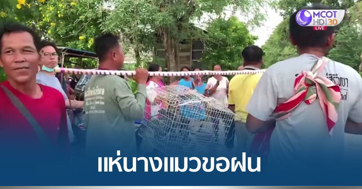 นครราชสีมา 15 ส.ค. – ปีนี้แล้ง หลายพื้นที่น้ำไม่เพียงพอทำการเกษตร จนชาวบ้านต้องพึ่งวิธีตามความเชื่อโบราณ แห่นางแมวรอบหมู่บ้าน เชื่อว่าทำแล้วฝนจะตกต้องตามฤดูกาล