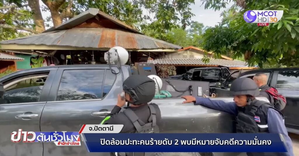 ปัตตานี 16 ส.ค. – ปิดล้อมคนร้ายหลบซ่อนตัวในบ้าน อ.หนองจิก จ.ปัตตานี ใช้อาวุธปืนยิงใส่เปิดทางหลบหนี เจ้าหน้าที่ยิงปะทะ คนร้ายเสียชีวิต 2 ราย พบมีหมายจับคดีความมั่นคงคนละ 4 หมาย
