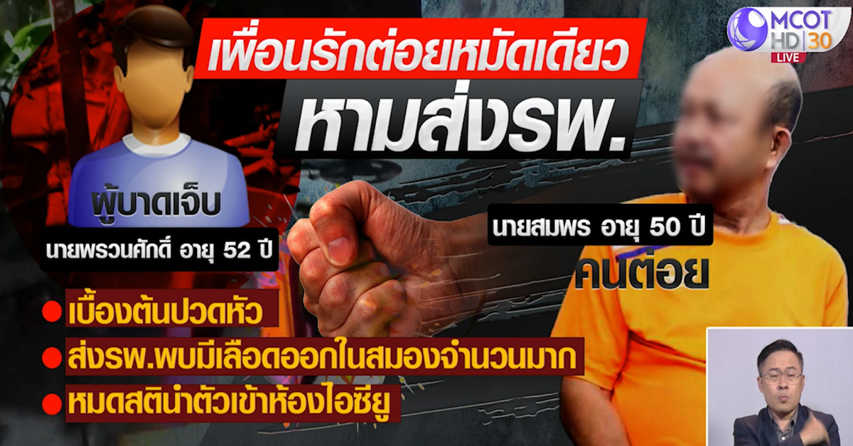 ฉะเชิงเทรา 19 ส .ค.-หนุ่มใหญ่นั่งกินเหล้ากับเพื่อนรัก แต่ดันมีปากเสียงกันต่อยเพื่อนจนล้ม และวานให้คนรู้จักพาไปส่งบ้าน จู่ๆ เพื่อนที่โดนต่อยหมดสติ จนเมียต้องหามส่งไอซียู