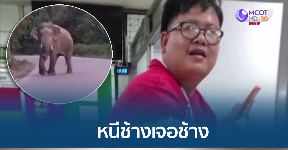 นายพรรพต ชาติภูธร อายุ 28 ปี ชาวบ้านตำบลหนองไม้แก่น อ.แปลงยาว จ.ฉะเชิงเทรา เล่าว่า ก่อนเกิดเหตุ 18.30 น. ขณะขี่รถจักรยานยนต์ออกจากบ้านไปกรีดยางตามปกติที่ ต.ลาดกระทิง พอขี่รถมาถึงหมู่ 10 บ้านแปลงไผ่ ต.ลาดกระทิง อ.สนามชัยเขต จ.ฉะเชิงเทรา เจอช้างป่าตัวใหญ่มากบนถนนช่วงทางโค้ง กำลังจะเดินข้ามถนนไปอีกฝั่ง ด้วยความตกใจจึงหักรถมอเตอร์ไซค์ออกเลนขวา แต่ดันเจอช่างป่าอีกตัวเดินพรวดขึ้นมาจากป่าเพื่อข้ามถนน ด้วยความตกใจจึงหักกลับมาทางเลนซ้าย แฮนด์มอเตอร์ไซค์ไปเกี่ยวงวงช้างป่า ทำให้รถล้มกลิ้ง บาดเจ็บแขนขวาหัก มีแผลถลอกตามร่างกาย ถือว่าดวงยังดีที่ช้างป่าสองตัวไม่เข้ามาทำร้ายซ้ำอีก คิดว่าอาจเป็นเพราะยกมือไหว้ขอชีวิต และช้างป่าอาจตกใจวิ่งเข้าป่าไป ชาวบ้านที่อยู่บริเวณนั้นออกมาช่วย
