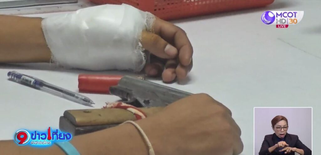 สอบถามแม่ของมือยิง ซึ่งเป็นภรรยาของผู้ตาย บอกว่า ช่วงเกิดเหตุหลังกินข้าวเสร็จ ลูกชายทะเลาะกับพ่อเลี้ยง เรื่องเปิดไฟในบ้าน พ่อเลี้ยงคว้ามีดดาบมาทำร้ายลูกชาย ตนเองพยายามห้ามแต่ไม่เป็นผลจนสุดต้าน ลูกชายกลับเข้าไปในห้องหยิบปืนมายิงสวนจนพ่อเลี้ยเสียชีวิต ทั้งสองคนปกติไม่ค่อยมีปากเสียงกัน ยกเว้นบางวันที่พ่อเลี้ยงเมา ส่วนสาเหตุเกิดจากการทะเลาะกันเรื่องไฟเปิดไฟสว่างไม่ได้นอนเท่านั้น