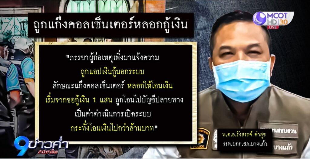 พ.ต.อ.รังสรรค์ คำสุข รักษาราชการแทน ผกก.สภ.บางแก้ว ให้ข้อมูลว่า ช่วงวันศุกร์ที่ผ่านมา ภรรยาของผู้ก่อเหตุได้มาแจ้งความว่าถูกแอปฯ เงินกู้นอกระบบในลักษณะแก๊งคอลเซ็นเตอร์หลอกให้โอนเงิน โดยเริ่มจากติดต่อขอกู้เงินหนึ่งแสนบาท แต่กลับถูกหลอกให้โอนเงินไปเรื่อยๆ อ้างว่าเพื่อเป็นค่าดำเนินการ ค่าเปิดระบบต่างๆ จนกระทั่งมีการโอนเงินไปให้ ยอดรวมกว่าล้านบาท ซึ่งหลังพนักงานสอบสวนได้รับแจ้งความ ก็มีการสั่งอายัดบัญชีดังกล่าวและอยู่ระหว่างติดตามตัวบัญชีปลายทาง หลังจากนี้จะเร่งรัดติดตามขบวนการแก๊งคอลเซ็นเตอร์นี้ มาดำเนินคดีตามกฎหมายโดยเร็ว