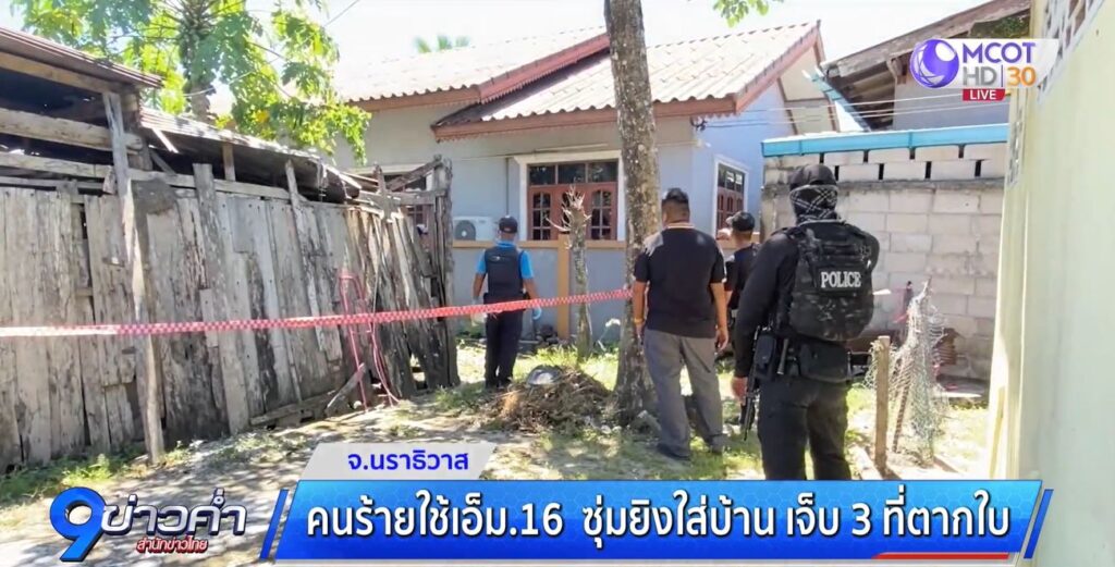 นราธิวาส 28 ส.ค. – คนร้ายใช้ปืนเอ็ม 16 ซุ่มยิงถล่มบ้านชาวบ้าน อ.ตากใบ นราธิวาส บาดเจ็บ 3 ราย ตำรวจคาดปมขัดแย้งส่วนตัว