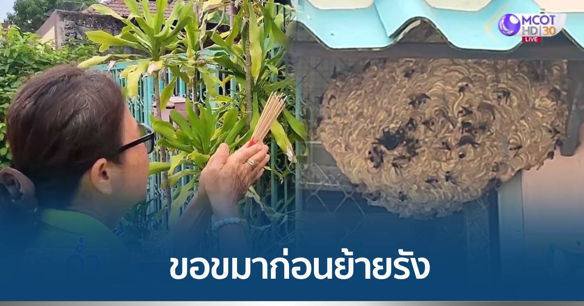 ส่วนบ้านอีกหลัง พบต่อทำรังอยู่หลังบ้านชั้นสอง เจ้าของบ้านจุดธูปบอกกล่าวเพื่อขอขมา ก่อนให้เจ้าหน้าที่กำจัด เจ้าของบ้านหลังนี้บอกว่า ตัวต่อมาทำรังนานแล้ว มีขนาดใหญ่ขึ้นเรื่อยๆ รู้สึกกลัว หวั่นเป็นอันตรายกับคนในบ้าน มีชาวบ้านบอกว่าถ้าต่อทำรังที่บ้านไหน บ้านนั้นก็จะมีโชค จึงซื้อลอตเตอรี่เลขที่บ้านไว้ . – สำนักข่าวไทย
