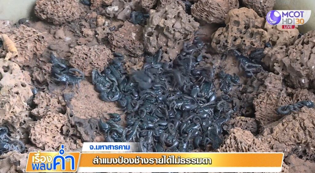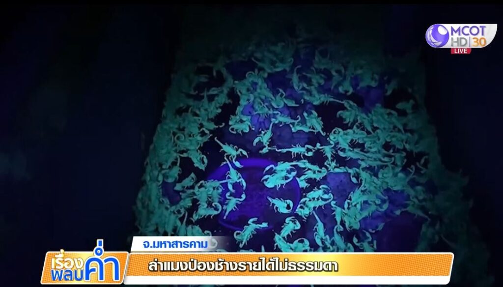 มหาสารคาม 1 ก.ย. – ชาวบ้านใน อ.เชียงยืน จ.มหาสารคาม ออกล่าแมงป่องช้าง สร้างรายได้เสริม กิโลกรัมละ 300-500 บาท