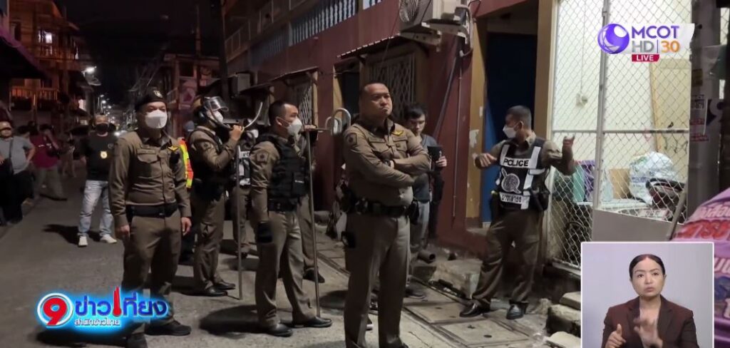 ชาวบ้านที่เห็นเหตุการณ์บอกว่า คุ้นหน้าคนร้าย คิดว่าพักอาศัยอยู่ในซอยไม่ไกลจากนี้ เจ้าหน้าที่จึงนำกำลังตามไปยังบ้านผู้ก่อเหตุ ทราบชื่อนายอนุ อายุ 33 ปี ในห้องพบมีดทำครัว 1 เล่ม ใบกัญชาจำนวนมาก และหม้อต้มน้ำกัญชาผสมใบกระท่อม 1 หม้อ เจ้าหน้าที่จึงยึดไว้เป็นหลักฐาน ส่วนผู้ก่อเหตุปีนออกด้านหลังบ้าน ขึ้นไปบนหลังคาบ้านข้างเคียง เจ้าหน้าที่จึงประสานขอกำลังกว่า 30 นาย ปิดล้อมบ้านพักคนร้าย พร้อมกันผู้ไม่เกี่ยวข้องออกห่างจากที่เกิดเหตุ เพื่อป้องกันอันตราย โดยคนร้ายมีมีดติดตัวอย่างน้อย 2 เล่ม และไม่ยอมให้ใครเข้าใกล้