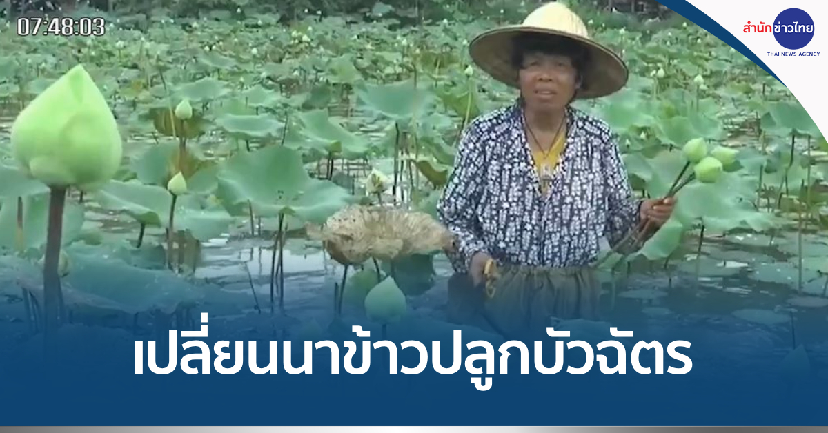 นางวาจา คงคา เกษตรกรใน จ.ปราจีนบุรี ปรับเปลี่ยนที่นาขนาด 4 ไร่ ปลูกบัวฉัตร สร้างรายได้เดือนละ 20,000 บาท นางวาจาบอกว่า ที่ผ่านมาราคาข้าวตกต่ำ และยังเสียค่าปุ๋ย ค่าเกี่ยว ถูกตัดค่าความชื้น จนบางครั้งแทบไม่มีเงินเหลือ จึงตัดสินใจปลูกบัวฉัตรขายแทน