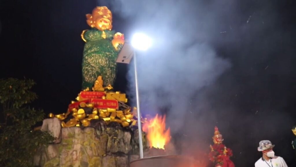 นนทบุรี 10 ก.ย. – สายมูแห่เผาถ่านจุดเทียน บูชา “องค์อินทร์แปลงสี่หูห้าตา” ใหญ่ที่สุดในโลก วันมงคล 9 เดือน 9 เพื่อขอพร ขอโชคลาภ