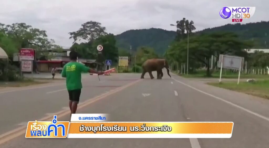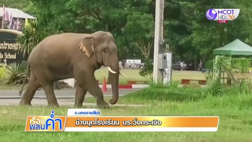 นครราชสีมา 11 ก.ย. – นักเรียนวิ่งหนีกันกระเจิง หลังพลายแคระ ช้างป่าเขาใหญ่บุกเข้าโรงเรียนช่วงเคารพธงชาติ