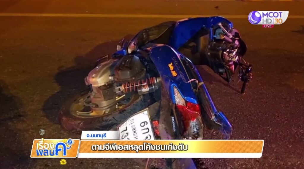 นนทบุรี 14 ก.ย. – หนุ่มขี่ จยย.หลุดโค้งต่างระดับบางคูเวียง อ.บางใหญ่ นนทบุรี พุ่งชนรถเก๋ง ตรวจสอบมือถือพบเปิด GPS ปลายทางถนนประชาชื่น