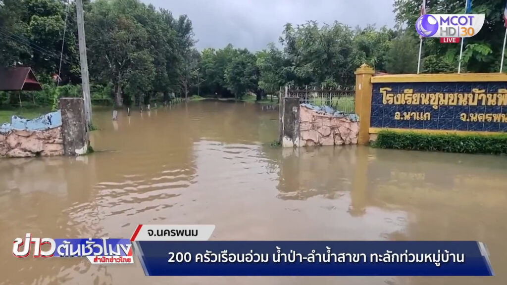 จ.นครพนม ฝนตกหนักตลอดสัปดาห์ ทำให้แม่น้ำโขง เพิ่มระดับวันละ 20-30 เซนติเมตร ล่าสุดวัดได้ 9 เมตรอยู่ห่างจุดล้นตลิ่งเพียง 3 เมตร ส่วนลำน้ำก่ำ ลำน้ำบัง ลำน้ำอูน ลำน้ำสงคราม และน้ำป่าจากเขาภูพานน้อย ตำบลพิมาน อ.นาแก ระบายน้ำไม่ทัน ทะลักท่วมบ้านเรือนกว่า 200 หลัง นายก อบต.พิมาน ต้องเร่งระดมเจ้าหน้าที่วางแนวกั้นน้ำ ซึ่งเช้านี้น้ำลดลงแล้ว แต่ต้องเฝ้าระวังต่อเนื่อง เพราะปริมาณลำน้ำก่ำยังสูง