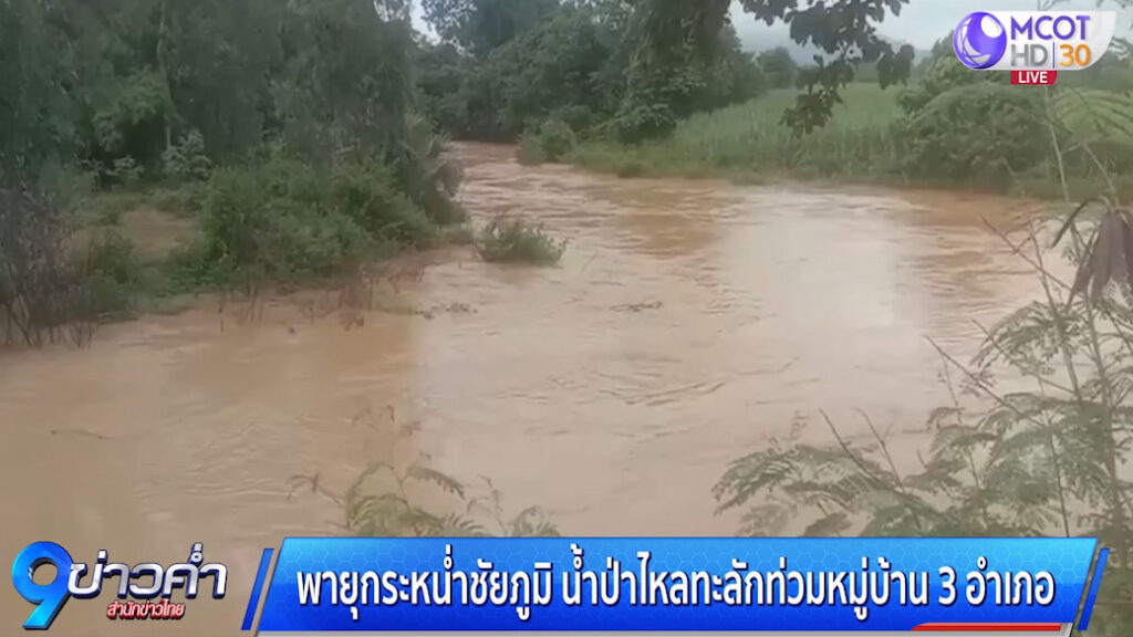 ชัยภูมิ 17 ก.ย.-ชัยภูมิฝนหนัก พายุกระหน่ำน้ำป่าสีแดงขุ่นจากเทือกเขาพญาฝ่อ และเทือกเขาพังเหยไหลหลากกลางดึก ชาวบ้านติดเทือกเขาพญาฝ่อ จ.ชัยภูมิ เกือบไม่รอด