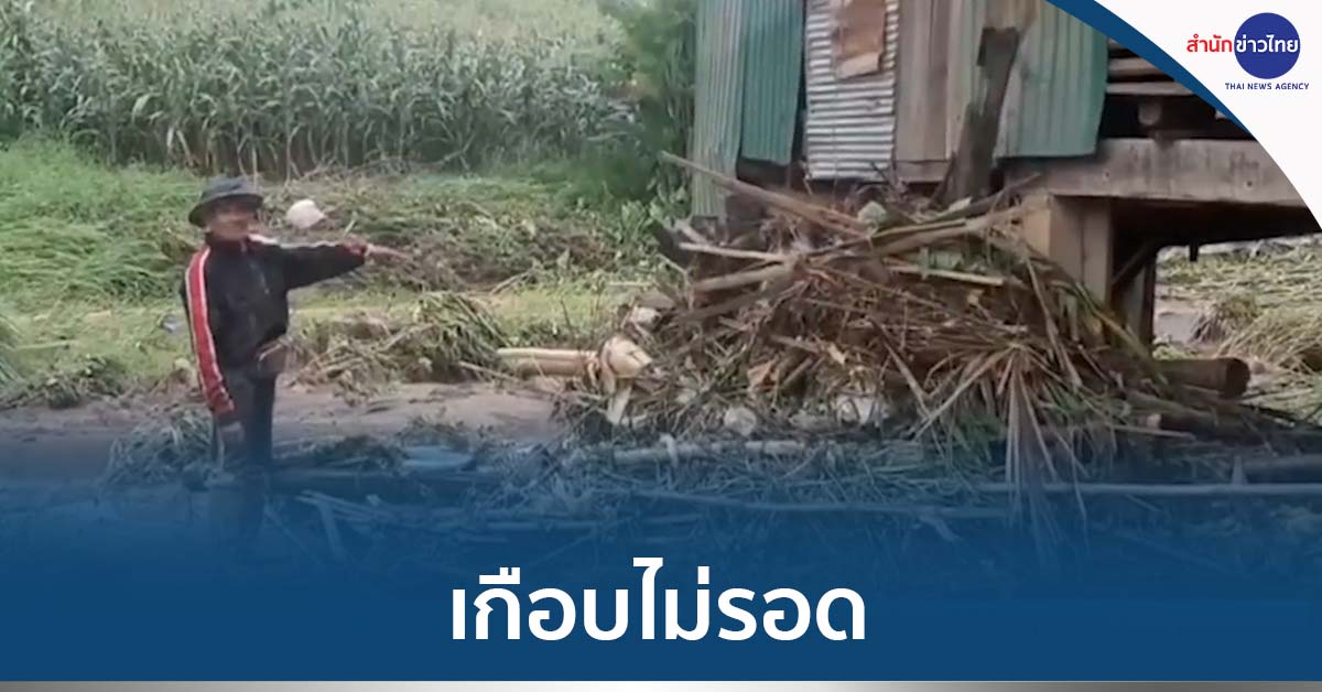 ด้าน นายประจวบ มะลิลำ บ้านเรือนอยู่ด้ายล่างติดเทือกเขาพญาฝ่อ เผยนาทีชีวิตหลังฝนได้ตกมาอย่างหนักช่วงตลอดทั้งคืนในระหว่างนั้นทุกคนกำลังนอนหลับพักผ่อนอยู่บนชั้น 2 ของบ้านอยู่ๆ ได้ยินเสียงโครมครามดังลั่นมาต่อเนื่องก็เลยลุกขึ้นมาดูเห็นขอนไม้ขนาดใหญ่ลอยมาติดหลังห้องน้ำที่อยู่ข้างๆ บ้านและขณะนั้นก็มีมวลน้ำไหลมาอย่างรุนแรงสูงประมาณ 80 ซม.ไหลบ่าเข้ามาที่ตัวบ้านอย่างเร็ว โดยระหว่างที่น้ำไหลบ่ามาตนตัดสินใจใช้สายยางมัด รถจักรยานต์และมัด 3 คนพ่อแม่ลูกไว้กับเสาบ้าน จึงรอดมาได้หวุดหวิด สักพักใหญ่น้ำจึงได้ลดลงทำให้ตนและครอบครัวรอดมาได้อย่างหวุดหวิด
