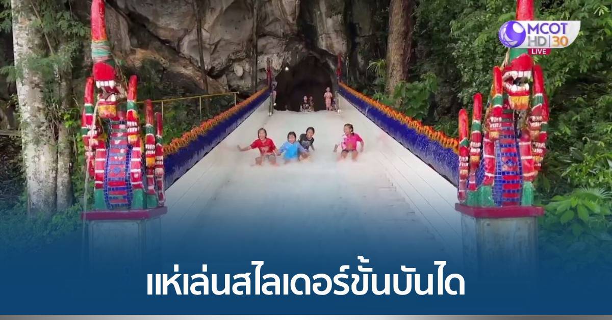 เลย 18 ก.ย. – มหัศจรรย์ธรรมชาติ หนึ่งปีมีครั้งเดียว ปรากฏการณ์น้ำไหลออกจากถ้ำ วัดถ้ำโพธิสัตว์ บ้านจอมทอง อ.หนองหิน จ.เลย แห่เล่นสไลเดอร์ขั้นบันไดกันสนุกสนาน