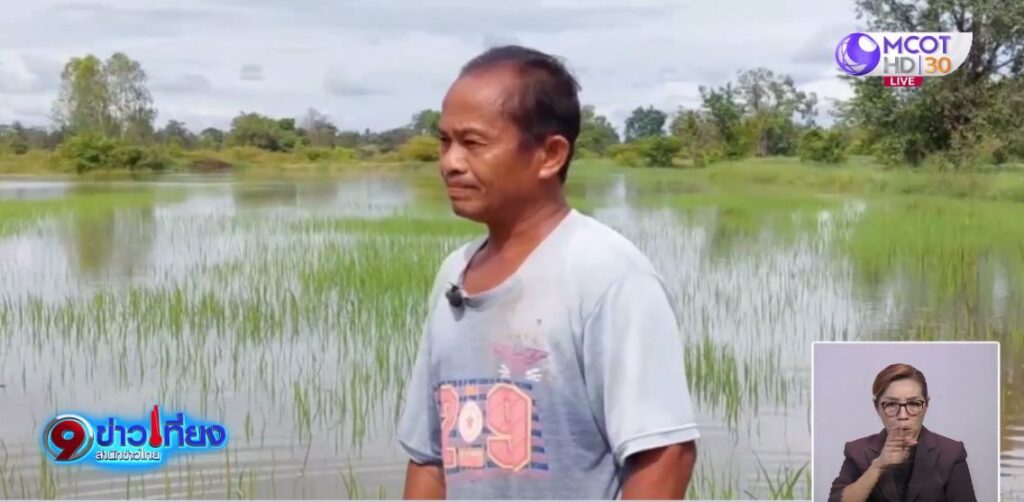ขณะที่ภาคอีสานหลายจังหวัด พื้นที่เกษตรถูกน้ำท่วม น้ำจากลำเซบก ลำน้ำสาขาของแม่น้ำมูล น้ำไหลท่วมสูงประมาณ 1 เมตร ชาวนาบ้านยางกระเดา ต.ท่าเมือง อ.ดอนมดแดง จ.อุบลราชธานี สำรวจพื้นที่นากว่า 4 ไร่ ถูกน้ำเข้าท่วม นาข้าวจมน้ำภายในคืนเดียว