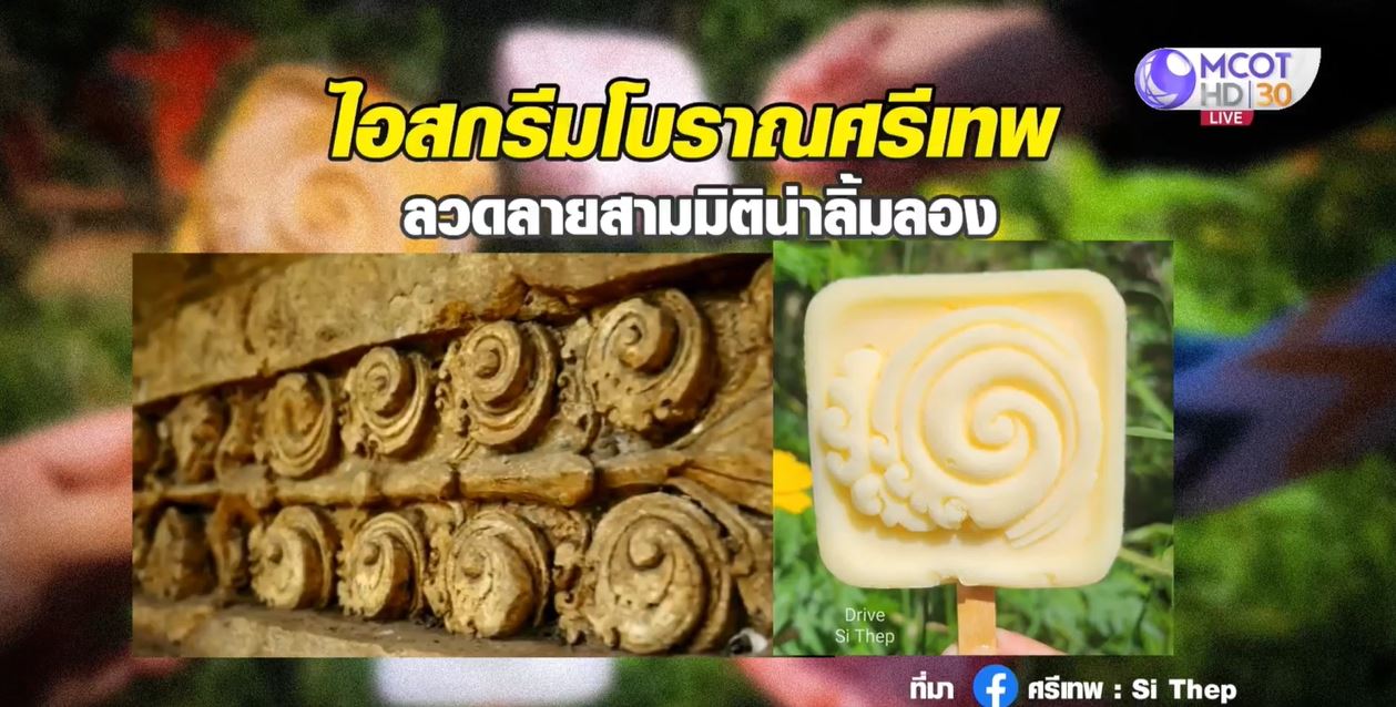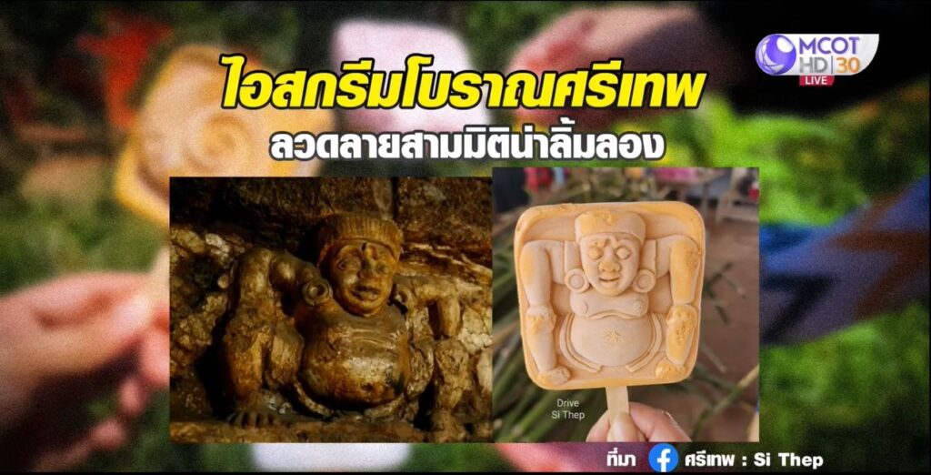 เฟซบุ๊ก ศรีเทพ : Si Thep โพสต์รูปภาพ “ไอศกรีมโบราณภาพ” ในอุทยานประวัติศาสตร์ศรีเทพ อ.ศรีเทพ จ.เพชรบูรณ์ โดยไอศกรีมออกแบบให้เป็นลวดลายต่างๆ สอดคล้องกับลวดลายโบราณสถานในอุทยานประวัติ พร้อมระบุข้อความว่า “ไอติมโบราณ ของเมืองโบราณศรีเทพ…Intrend มิใช่น้อยไอติมอร่อย ๆ ลายเก๋ ๆ มาเที่ยวศรีเทพแล้วจะรู้ว่าคือลายอะไรและอยู่ตรงไหนของเมืองศรีเทพ”