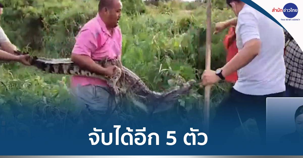 เมื่อคืนที่ผ่านมา เจ้าหน้าที่ชุดปฏิบัติการทีมไกรทอง จากกรมประมง มูลนิธิกู้ภัยเสมอกันสุพรรณบุรี ได้ระดมกำลังค้นหา จนสามารถจับจระเข้ได้เพิ่มอีก 5 ตัว คาดยังเหลืออีก 5 ตัว เจ้าหน้าที่เร่งมือตามจับมาให้ครบ