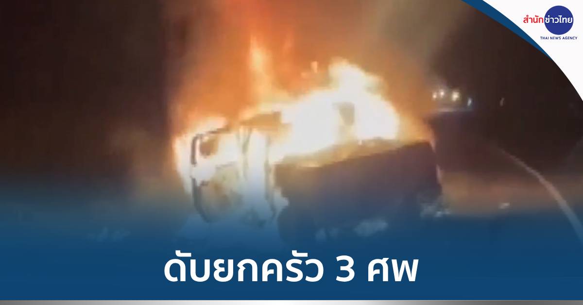 บุรีรัมย์ 9 ก.ย.- กระบะอดีตตำรวจเกษียณราชการ พุ่งชนรถจักรยานยนต์ไฟลุกท่วมทั้งสองคัน 3 พ่อแม่ลูกเสียชีวิตในที่เกิดเหตุ บนถนนสายสระประดู่-ทุ่งแสงทอง ต.ทุ่งแสงทอง อ.นางรอง จ.บุรีรัมย์