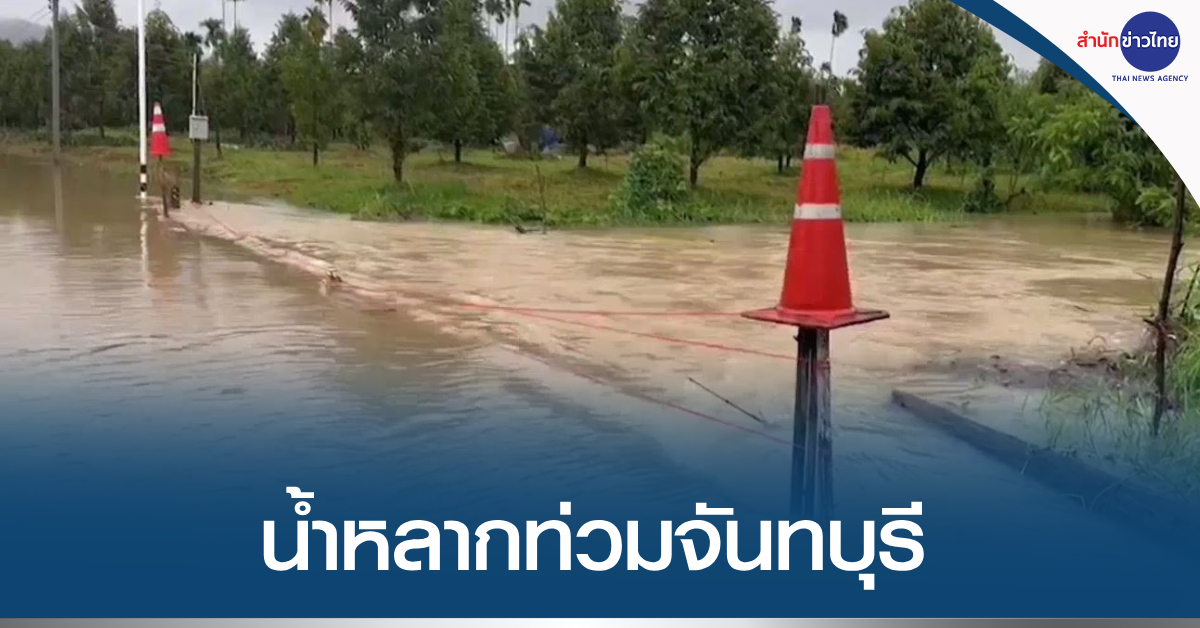 ที่ จ.จันทบุรี มีฝนตกอย่างต่อเนื่อง ทำให้ปริมาณน้ำสะสม จนเกิดน้ำหลากเอ่อล้นคลองท่วมพื้นที่เกษตรกรรม สวนผลไม้ เส้นทางจราจร และบ้านเรือนประชาชนในพื้นที่ลุ่มต่ำบางแห่ง ระดับน้ำเพิ่มสูงขึ้น น้ำกำลังไหลลงด้านล่าง ปลายทางสะพานกระทิง แม่น้ำจันทบุรี เข้าสู่ ต.วังแซ้ม อ.มะขาม เส้นทางสายบ้านแสลง-วังแซ้ม พื้นที่หมู่ 8 อ.เมืองจันทบุรี รอยต่อ อ.มะขาม จ.จันทบุรี มีน้ำท่วมเส้นทาง ระดับน้ำประมาณ 60 ซม. รถเล็กไม่สามารถสัญจรได้