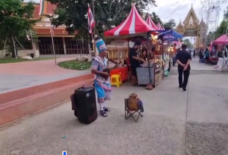 สองสามวันที่ผ่านมา ไปเล่นที่วัดจังหวัดนนทบุรี อาศัยชายคาที่เก็บโลงศพนอนกางเต็นท์นำแผ่นไวนิลมาปิดกันฝน เข้าห้องน้ำวัด อาบน้ำในวัด พอตกเย็นก็แต่งตัวเป็นตัวตลกบ้างหมอลำบ้าง ลากอุปกรณ์ออกไปร้องเพลงทำมาหากิน. – สำนักข่าวไทย