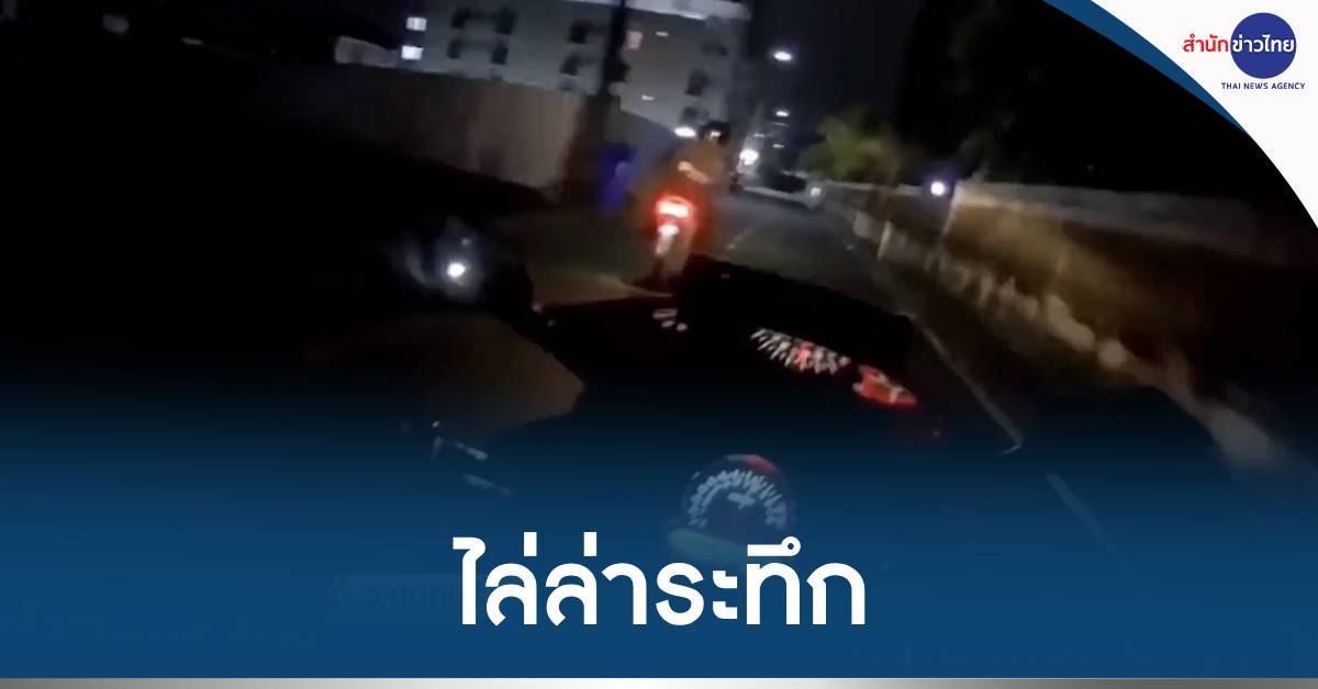 นนทบุรี 30 ก.ย.-ไล่ล่าระทึก ตำรวจขี่รถจักรยานยนต์ล่าวัยรุ่น หลังยกพวกไล่ฟันและไล่ยิงกัน มีผู้บาดเจ็บรวม 7 คน บริเวณสะพานเจษฎาบดินทร์ อำเภอเมืองนนทบุรี
