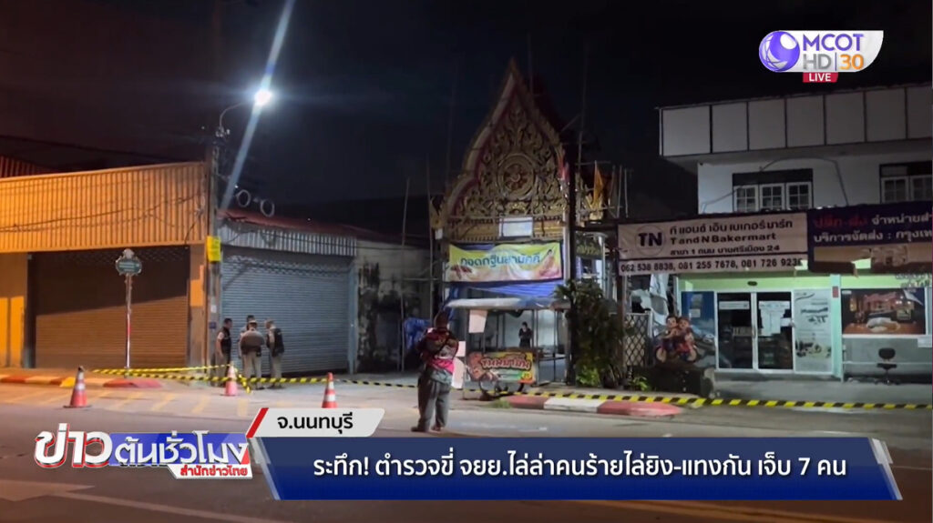 นาทีระทึกขณะตำรวจ สภ.บางศรีเมือง ขี่รถจักรยานยนต์ไล่ตามคนร้ายสองคนที่ขี่รถหลบหนีมาตั้งแต่สะพานเจษฎาบดินทร์ อำเภอเมืองนนทบุรี ไปจนถึงหน้าซอยชูชาติอนุสรณ์ อำเภอปากเกร็ด ก่อนเจ้าหน้าที่จะตัดสินใจขับปาดหน้ารถคนร้ายจนรถล้มทั้งคู่ เจ้าหน้าที่ได้รับบาดเจ็บ ส่วนคนร้ายทั้งสองคนได้รับบาดเจ็บเช่นกัน