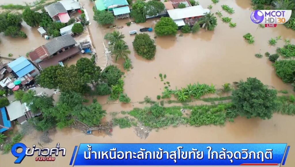 1 ต.ค. – มวลน้ำมหาศาลจากลำปางและแพร่ เริ่มไหลลงสู่พื้นที่ จ.สุโขทัย โดยเฉพาะแม่น้ำยมเพิ่มสูงขึ้นและทะลักท่วมบางพื้นที่ คาดว่าจะแตะจุดวิกฤติวันพรุ่งนี้ (2 ต.ค.) ขณะที่ชาวบ้านขอให้สร้างเขื่อนเรียงหิน เพื่อแก้ปัญหาอย่างยั่งยืนและตรงจุด