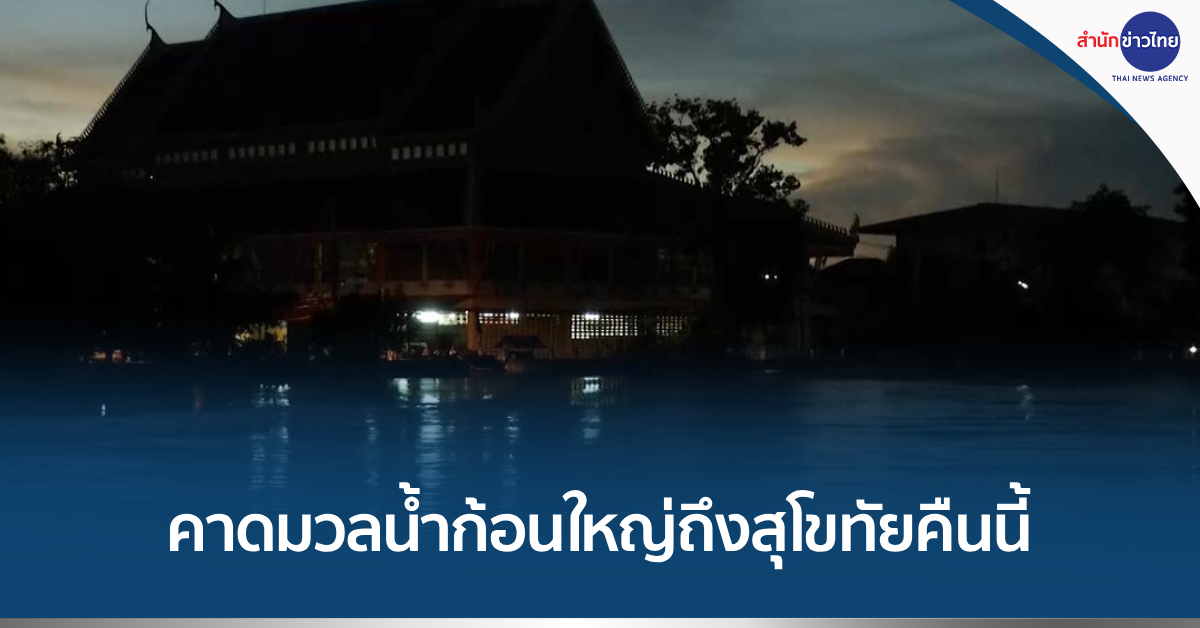 สุโขทัย 2 ต.ค. – ชลประทานสุโขทัย เผยคืนนี้ (2 ต.ค.) มวลน้ำก้อนใหญ่จาก อ.วังชิ้น จ.แพร่ และ อ.ศรีสัชนาลัย จ.สุโขทัย จะเดินทางมาถึงสุโขทัยเหนือประตูระบายน้ำหาดสะพานจันทร์ ปริมาณ 1,500 ลูกบาศก์เมตรต่อวินาที