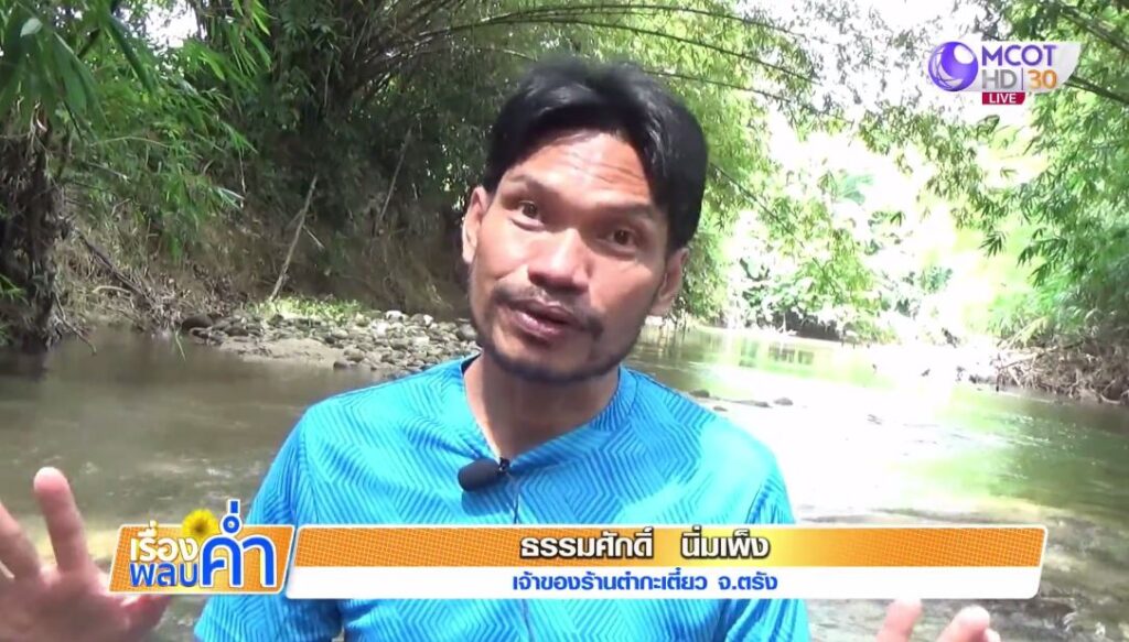 นายธรรมศักดิ์ นิ่มเพ็ง อายุ 48 ปี เจ้าของร้านตำกะเตี๋ยว กล่าวว่า เมื่อก่อนเคยทำงานในตัวเมือง แต่มีที่ทางในป่าในสวนในนา โชคดีที่มีต้นไม้และลำธาร จึงมีความคิดอยากอยู่กับบ้าน เปิดมา 1 ปี ลูกค้าตอบรับดีมาก ที่นี่น้ำไหลตลอดปี ด้านบนมีการทำน้ำประปาภูเขา ไม่มีการท่องเที่ยว เป็นน้ำประปาหมู่บ้าน จึงทำให้น้ำใสและมีปลาธรรมชาติอยู่มาก ชาวบ้านร่วมอนุรักษ์ ไม่ใช้เครื่องทุ่นแรงจับปลา