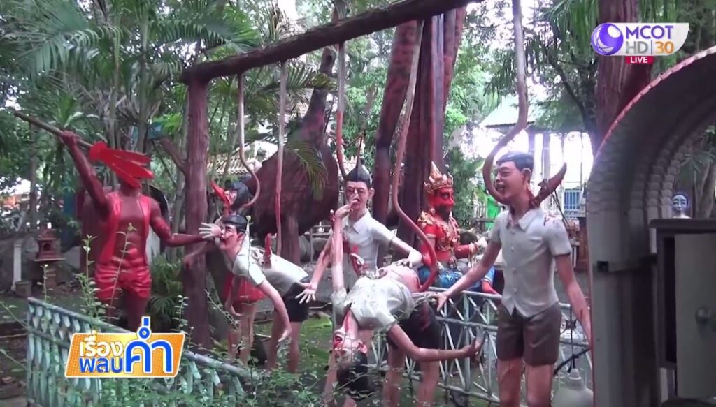 ไม่ใช่แต่นรก วัดนี้มีดินแดนสวรรค์ให้นึกถึงพระพุทธองค์ ให้ใฝ่ทำความดี ซึ่งแต่ละวันจะมีเยาวชน หรือผู้ปกครองพาลูกหลานเข้ามาชมอย่างต่อเนื่อง ชาวต่างชาติก็มี. – สำนักข่าวไทย