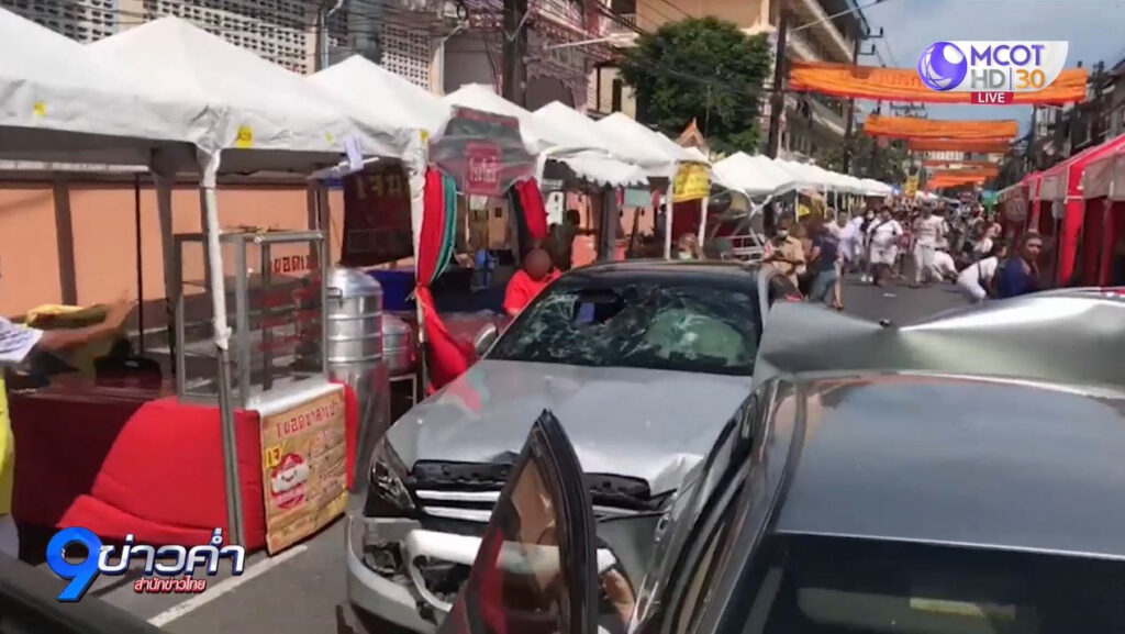 ตำรวจ สภ.เมืองภูเก็ต รับแจ้งจากพลเมืองดีว่าเกิดอุบัติเหตุรถชนกันและชนคนเดินเท้า เยื้องประตูทางเข้าวัดขจรรังสรรค์ หรือวัดเหนือ ถ.ระนอง อ.เมืองภูเก็ต ซึ่งมีการติดตั้งซุ้มสำหรับขายอาหารเจ มีผู้บาดเจ็บและเสียชีวิต หลังรับแจ้งรายงานผู้บังคับบัญชาและเดินทางไปตรวจสอบ พร้อมด้วยเจ้าหน้าที่มูลนิธิกุศลธรรมภูเก็ต